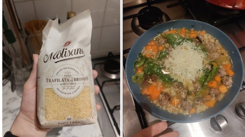 “The rest goes in the freezer. On the day of eating, I just add some pasta/rice/bread and reheat. I eat fantastic meals with minimal effort.