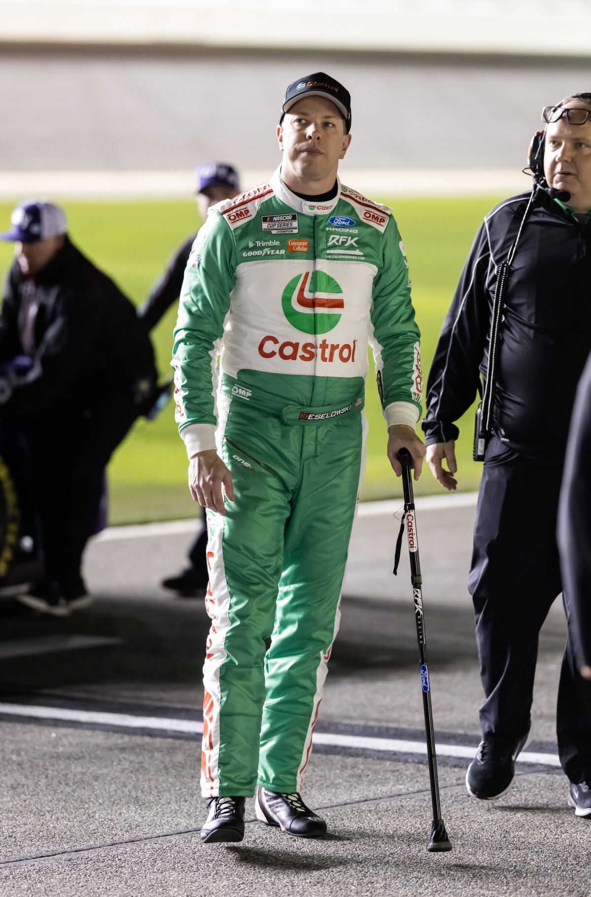 NASCAR, Motorsport, USA Cup Qualifying Feb 11, 2026 Daytona Beach, Florida, USA NASCAR Cup Series driver Brad Keselowski walks with a cane during qualifying for the Daytona 500 at Daytona International Speedway. Daytona Beach Daytona International Speedway Florida USA, EDITORIAL USE ONLY PUBLICATIONxINxGERxSUIxAUTxONLY Copyright: xMarkxJ.xRebilasx 20260211_mjr_su5_070