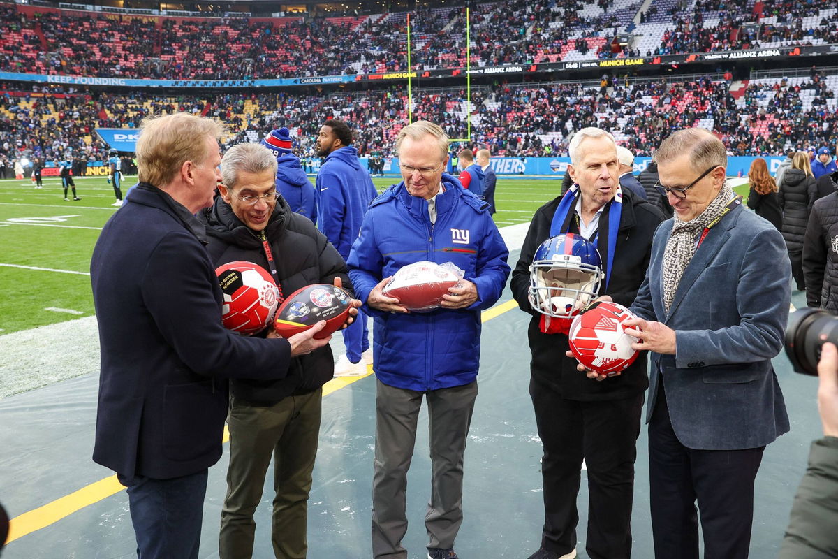l-r: Commissioner NFL, American Football Herren, USA Roger Goodell, Vorstand Finanzen Dr. Michael Diederich FC Bayern Muenchen, Besitzer der Giants John Mara, Steve Tisch, Vorstandsvorsitzender Jan-Christian Dreesen FC Bayern Muenchen, New York Giants vs. Carolina Panthers, Football, NFL, 10.11.2024 Muenchen Bayern Deutschland Copyright: xkolbert-press/ChristianxKolbertx