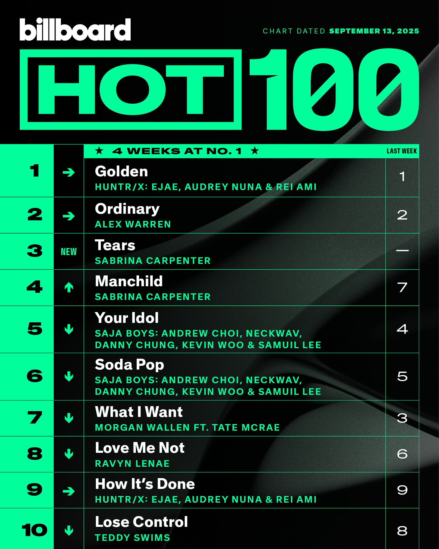 — billboard (@billboard) September 8, 2025Sabrina Carpenter seventh studio album, Man's Best Friend, debuted at no. 1 on the Billboard 200 with 366K units (224K pure sales). It is the biggest opening for a woman this year so far.
